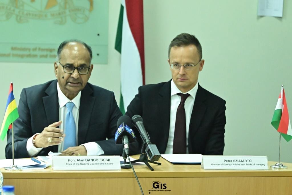 The Minister of Land Transport and Light Rail, Minister of Foreign Affairs, Regional Integration and International Trade, Alan Ganoo, in his capacity as the President of OACPS Council of Ministers, made this statement yesterday, following a working session with the Minister of Foreign Affairs and Trade of Hungary, Péter Szijjárto, at the seat of the Ministry of Foreign Affairs in Port-Louis.