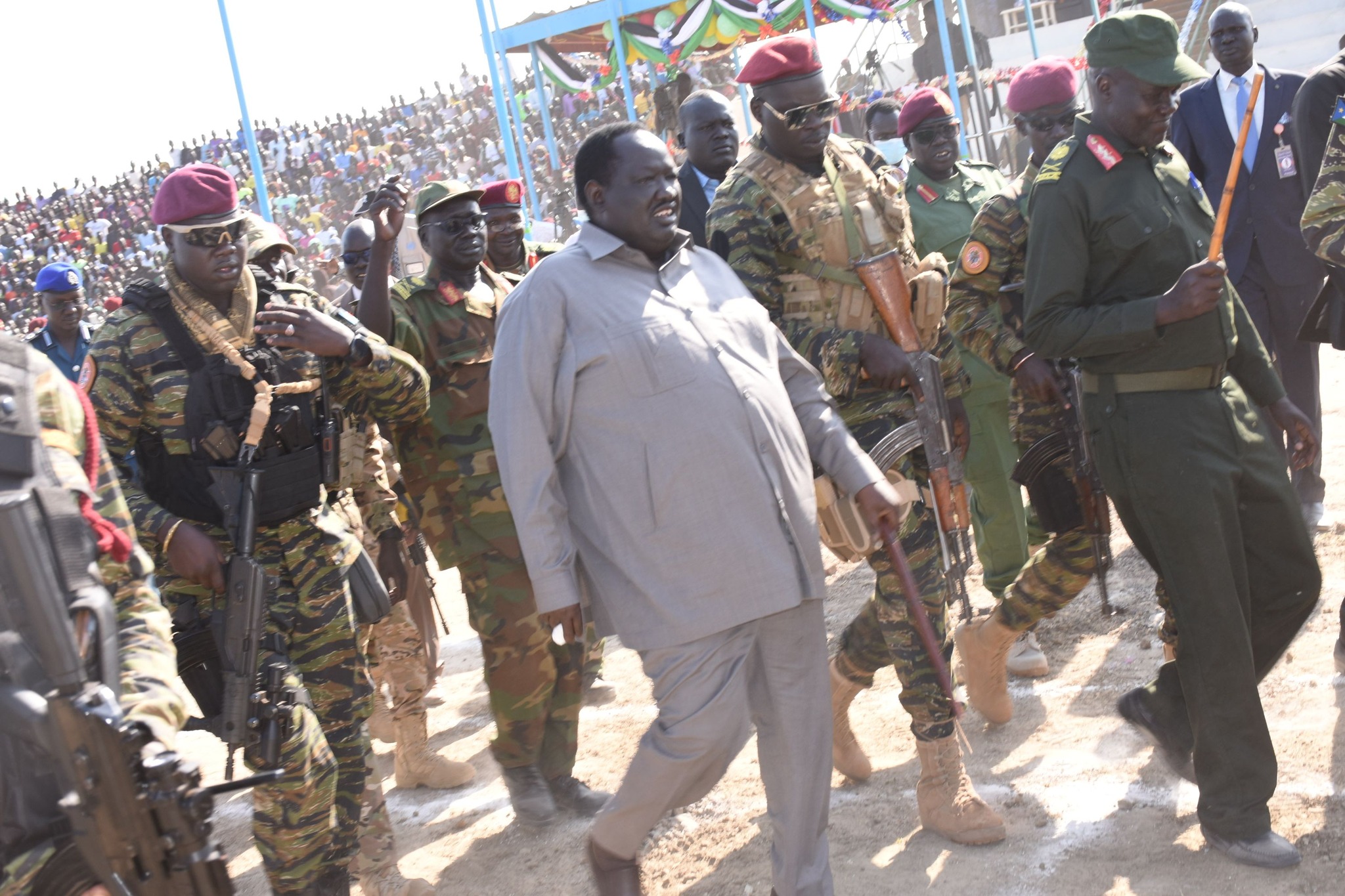 South Sudan, Bentiu: Saturday, 14th January 2023, Governor Lt. Gen. Dr Joseph Manytuil Wejang on Saturday participated in the graduation ceremony of 3610 Necessary Unified Force at Bentiu Independence Stadium.