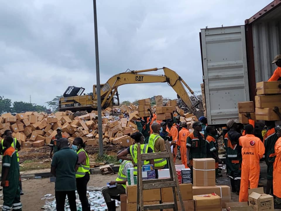 The destruction of the condemned drugs was done at the LAWMA waste destruction site in Epe, Lagos State, with the National Agency for Food and Drug Administration and Control (NAFDAC), The National Drug Law Enforcement Agency (NDLEA) and the Department of State Services(DSS).