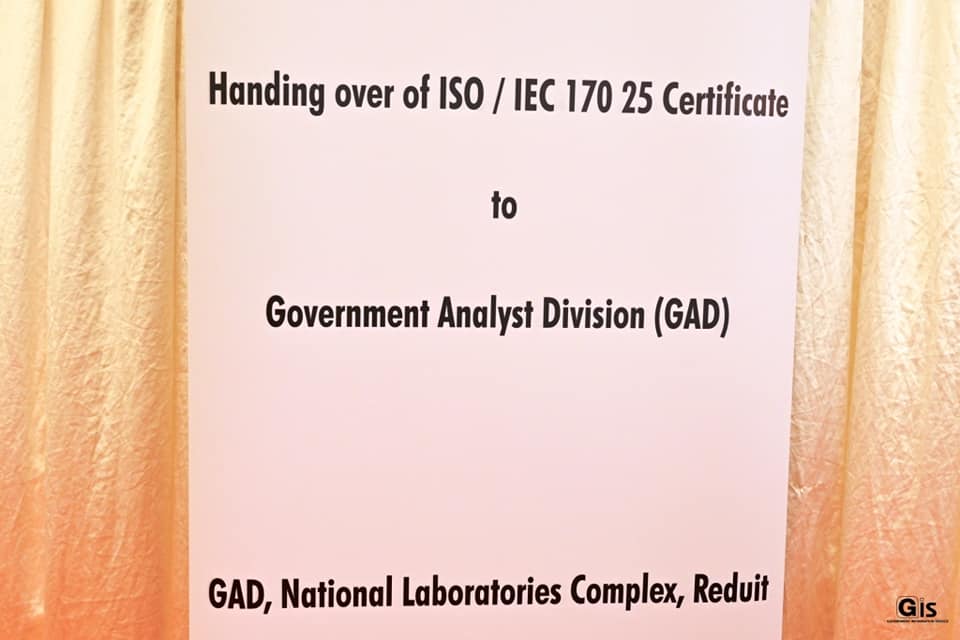 Mauritius: The Government Analyst Division (GAD) has been awarded the ISO/IEC 17025:2017 Certificate by the Mauritius Accreditation Service (MAURITIUS), this morning, at the National Laboratories Complex, in Réduit.