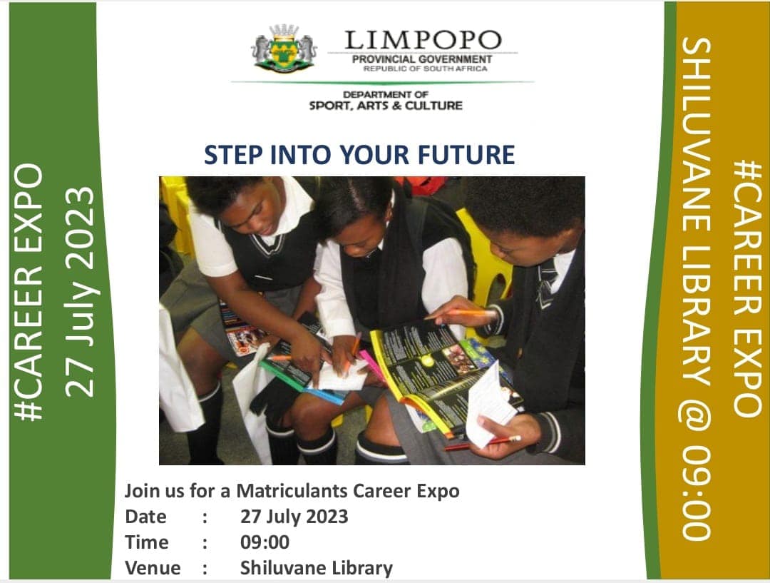 South Africa: The Department of Sport, Arts and Culture, through the Library and Information Services unit, will host a Career Expo for matriculants as part of a literacy programme by Tzaneen District Library.