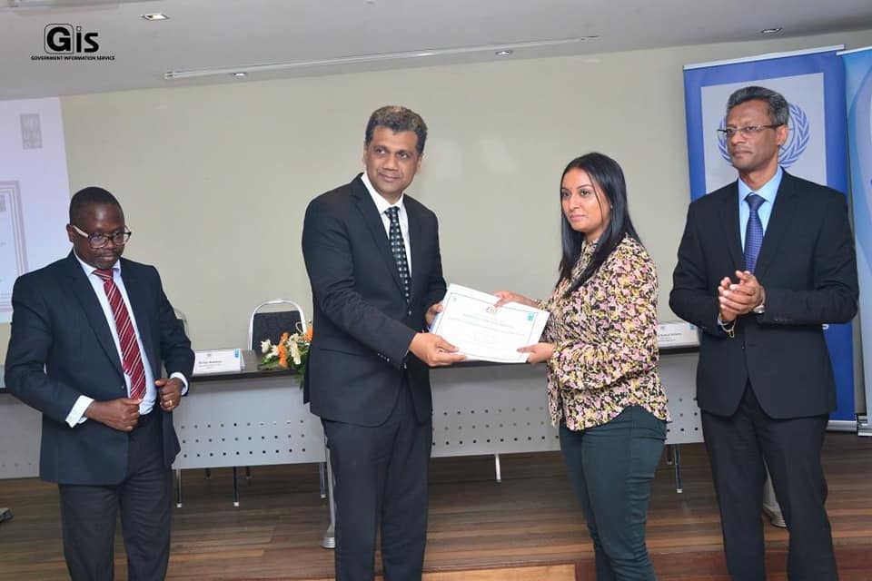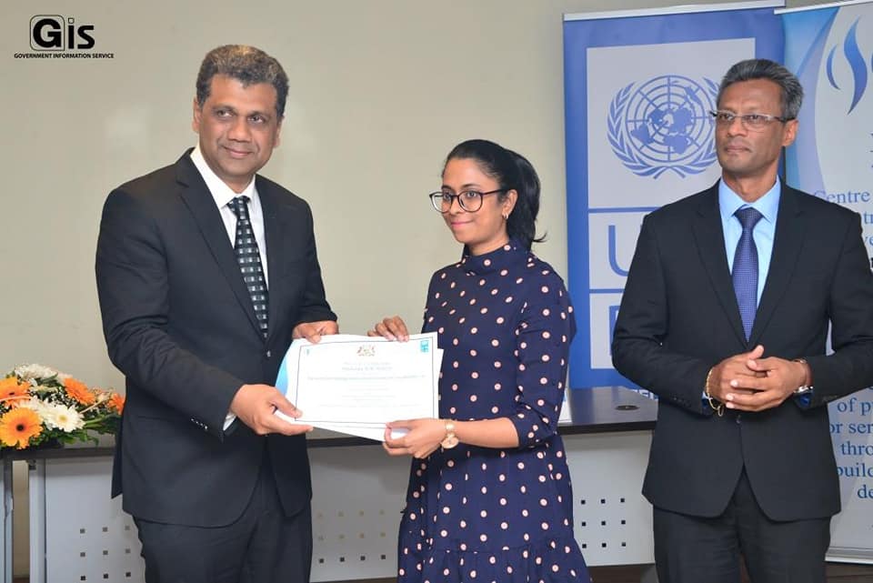 The Director General of the Civil Service College Mauritius, Prof. Ramesh Durbarry, the Senior Economist Officer representing the UNDP Resident Representative in Mauritius and Seychelles, Dr Tony Muhumuza, and other personalities were present at the Award Ceremony.