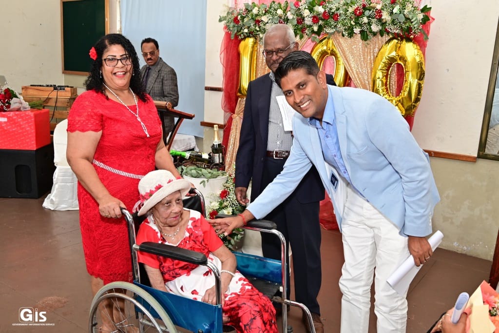 In this context, an official ceremony was organised by the Ministry of Social Integration, Social Security and National Solidarity to honour the new centenarian. On this occasion, Mrs Rabaud received from the authorities a cheque amounting to Rs 26,203, a cheque to the tune of Rs 10,000 from the National Solidarity Fund, a bouquet, a centenarian medal, a certificate and an air fryer.