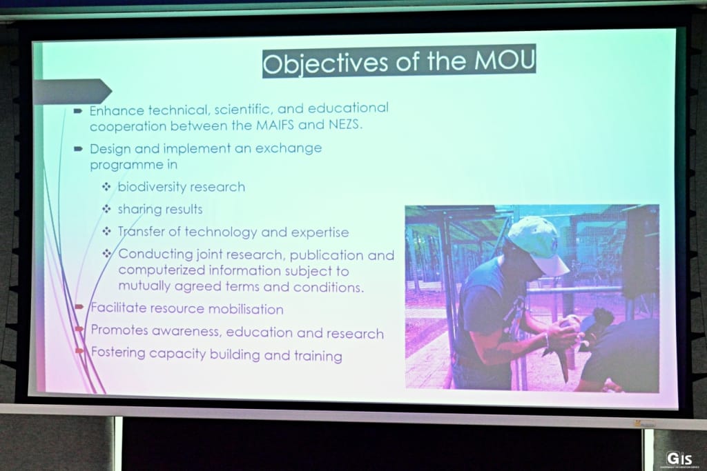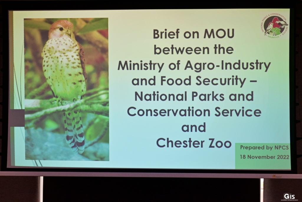 Signatories were the Director of the National Parks and Conservation Service, Mr Kevin Ruhomaun and the Regional Field Programme Manager of the Chester Zoo, Dr Claire Raisin.
