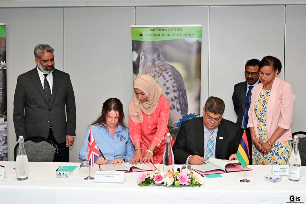 Mauritius: A Memorandum of Understanding (MoU) aiming to formalise scientific collaboration between the National Parks and Conservation Service and the Chester Zoo was renewed this afternoon during a signing ceremony held in Port Louis in the presence of the Attorney-General, Minister of Agro-Industry and Food Security, Mr Maneesh Gobin, and the Senior Chief Executive of the Ministry, Mr Medha Gunputh.