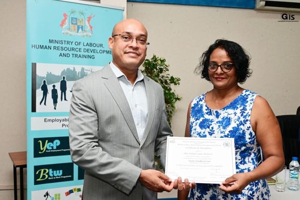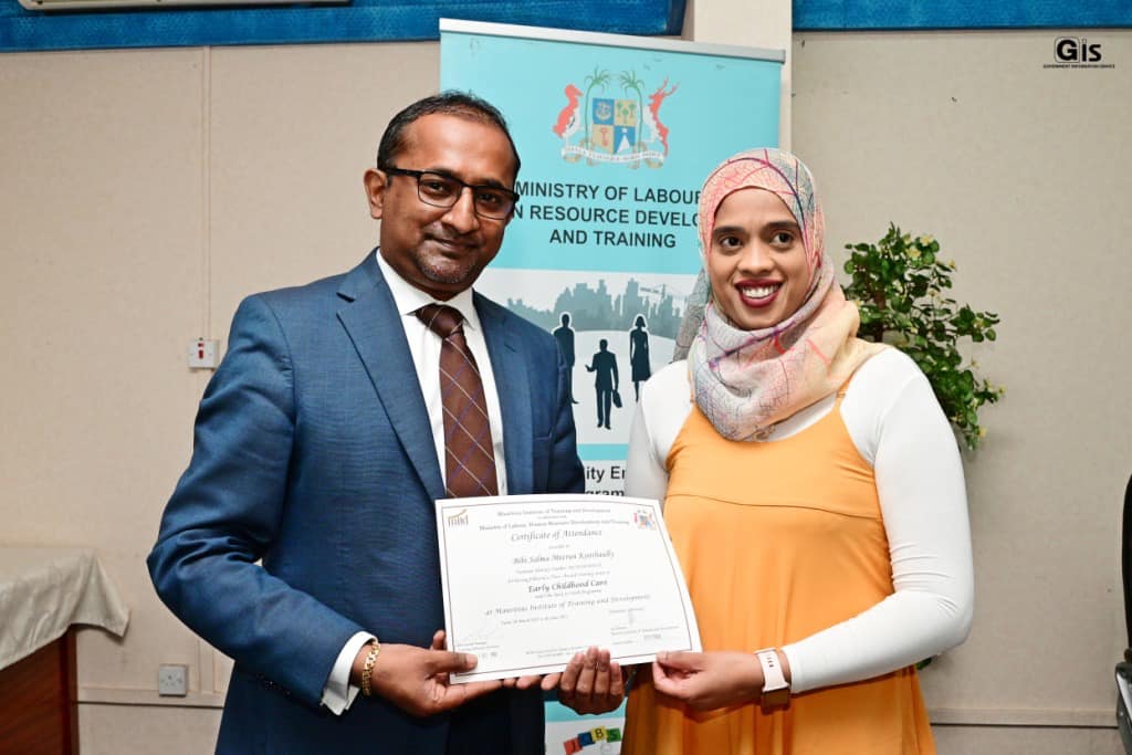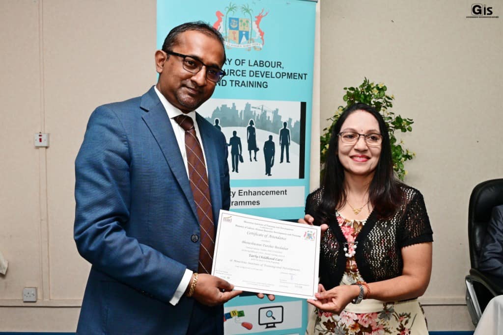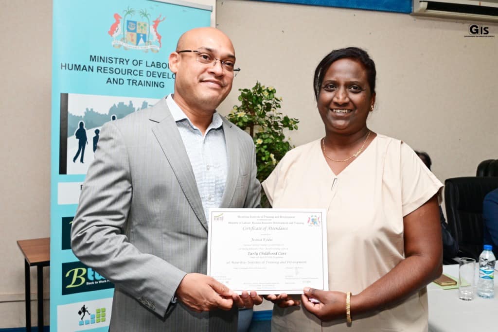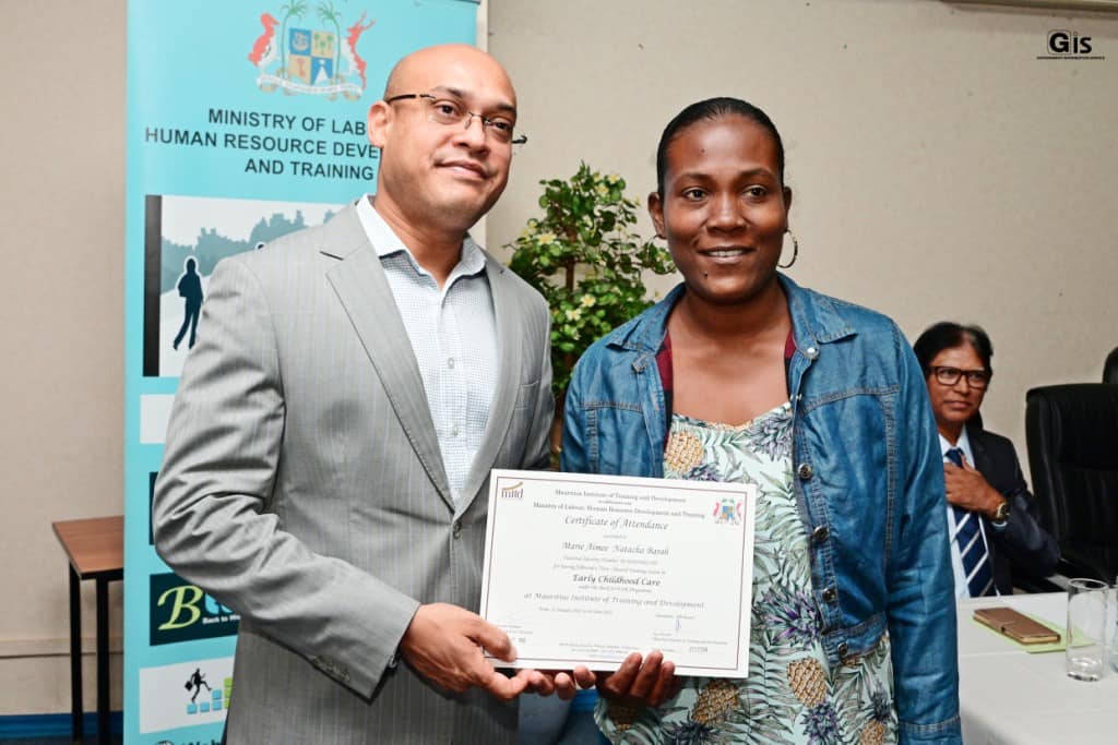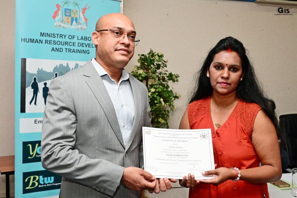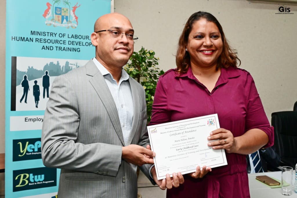 The ceremony was organised by the Ministry of Labour, Industrial Relations, Employment and Training in collaboration with the Mauritius Institute of Training and Development (MITD).