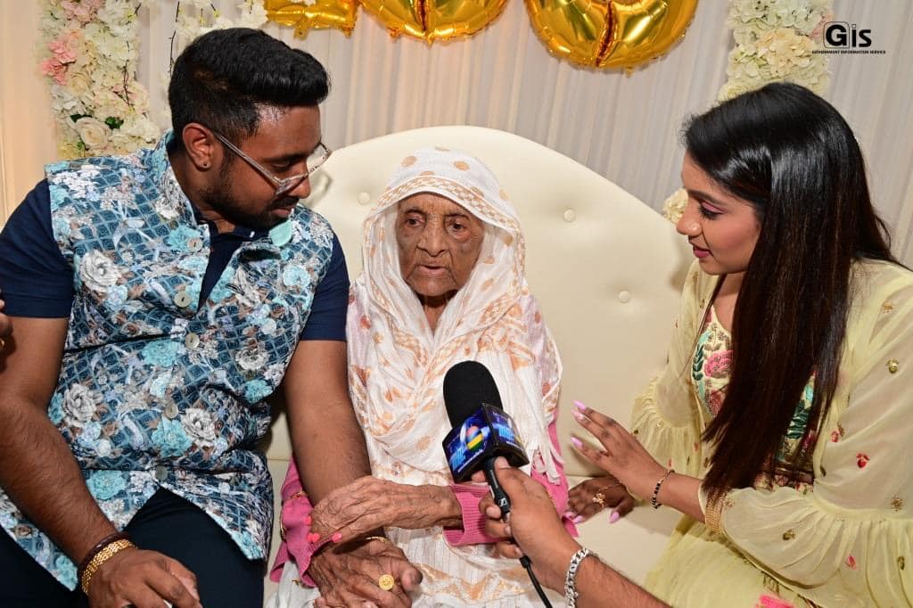 An official ceremony was organised by the Ministry of Social Integration, Social Security and National Solidarity to honour the new centenarian. Mrs Auchambit received from the authorities a cheque amounting to Rs 26,203; a centenarian medal; a cookware set; a gift from the Senior Citizens Council; and a cheque to the tune of Rs 10,000 from the National Solidarity Fund.