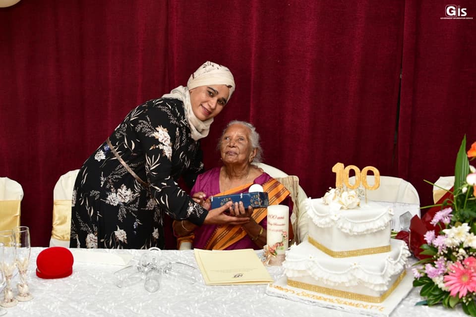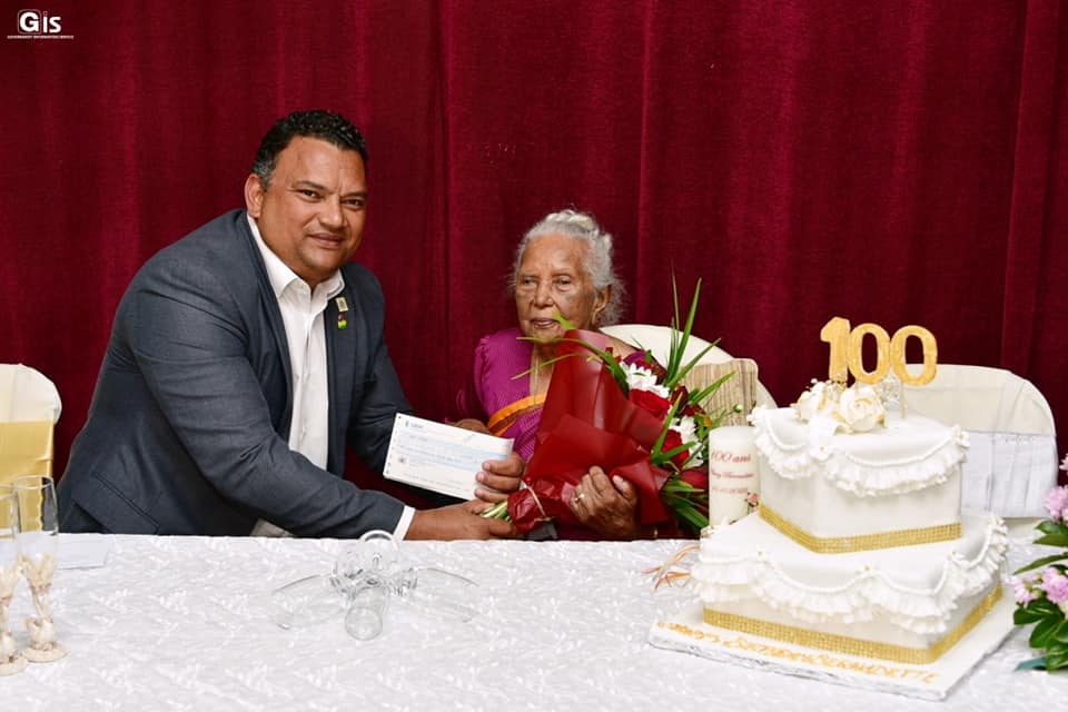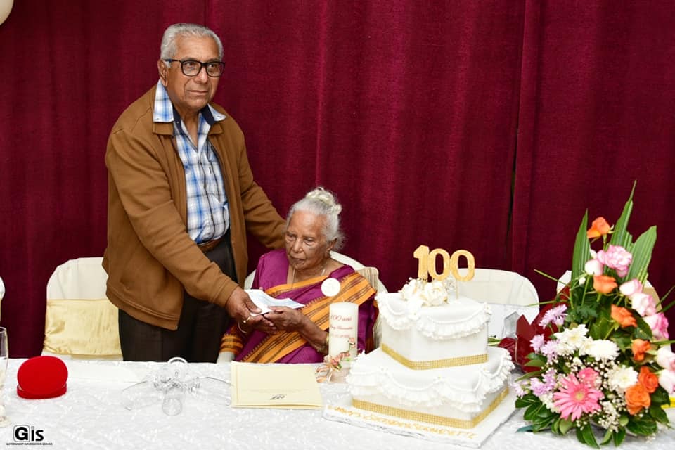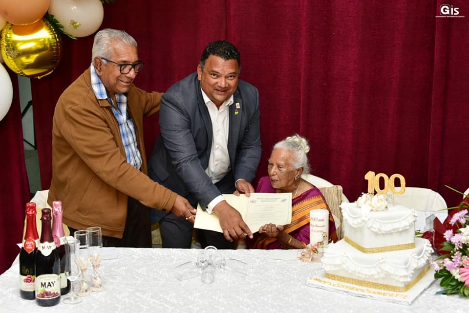 An official ceremony was organised by the Ministry of Social Integration, Social Security and National Solidarity to honour the new centenarian. Mrs Ramadu received, from the authorities, a cheque amounting to Rs 26,203; a centenarian medal; a certificate; an air fryer; a gift from the Senior Citizens Council; and a cheque to the tune of Rs 10,000 from the National Solidarity Fund.