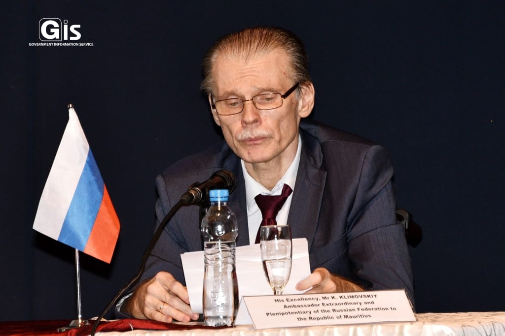 In his opening remarks, Ambassador Klimovskiy laid emphasis on the friendly ties that exist between Mauritius and Russia. He recalled that Mauritius celebrated its 55th Independence Anniversary this year and underlined that the country advocates for equal cooperation with different countries of the world.