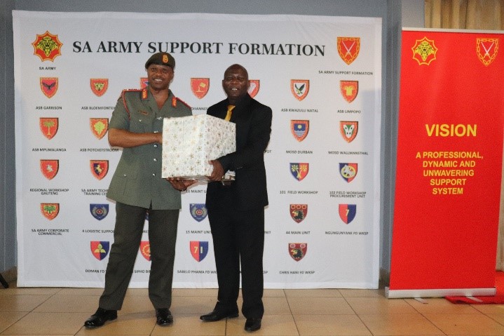 An emotional moment came when the Support Formation Representative, Colonel S. E. Thinane and the Officers Commanding the units under command gave their farewell speeches and showered the Outgoing General Officer Commanding with gifts and tokens of appreciation, as some of them called them. The Officer Commanding Army Support Base Limpopo, Colonel T. A. Mukwevho, in his speech, stated that the General Officer Commanding always made sure he gave the unit pressure in order to acquire better results, and the unit achieved more under the leadership of the Major General M.J Tyhalisi.