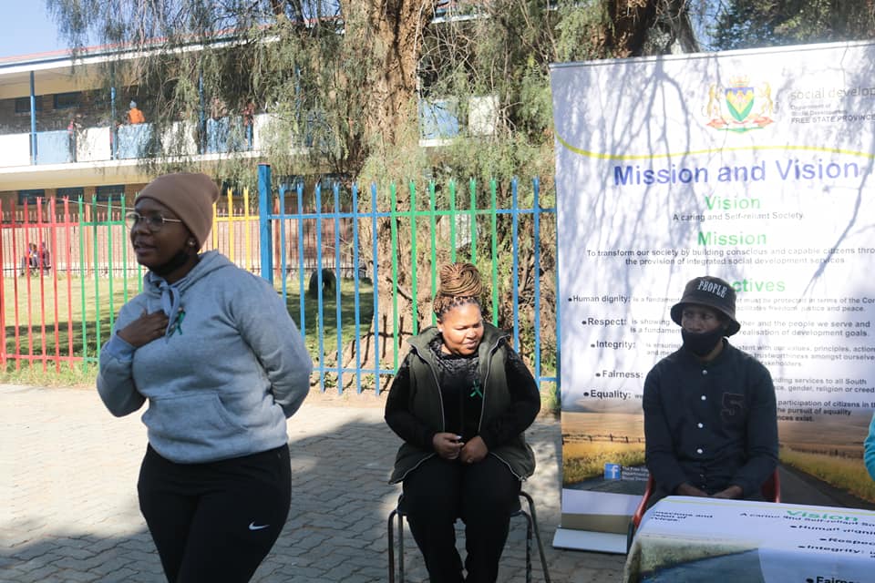 Department of Social Development Lejweleputswa District Welkom office, HIV/AIDS and Victim Empowerment programmes held an awareness session on bullying and children’s rights with learners aged 7 to 14 years from S. A. Mokhothu and Tshireletso primary schools in Nyakallong, Allanridge.