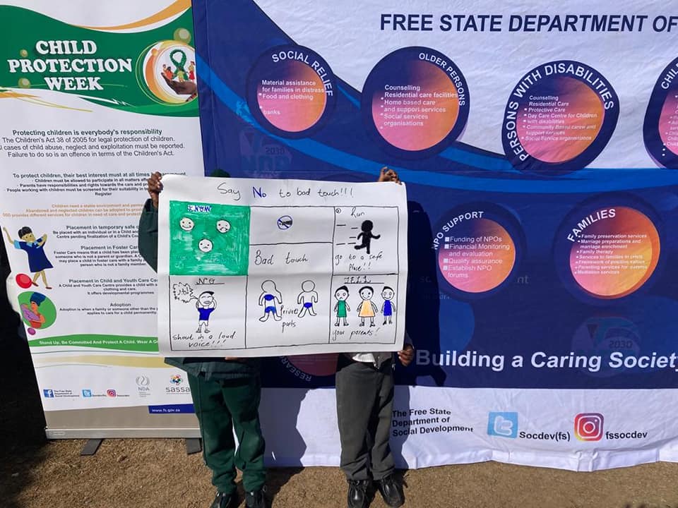 Department of Social Development, Mangaung Metro, in partnership with the Office of the Premier, Department of Health, SAPS and local NGOs held an awareness campaign on Child Protection Week in Van Stadensrus.