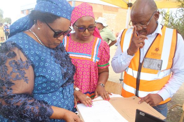 Following the meeting with SETAs, Premier Ntombela, accompanied by MEC Motshidisi Koloi and Director General Kopung Ralikontsane, descended to the disaster-stricken Jagersfontein, where the broad government service delivery machinery is dispensing services to the community. The various government departments are SASSA, Home Affairs, CoGTA and DESTEA.