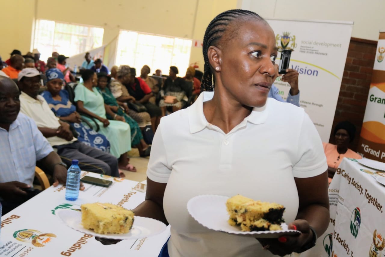 South Africa: Minister for Social Development, Ms Lindiwe Zulu and MEC for Social Development, Ms Motlagomang “Mamiki” Qabathe, joined by Mayor of Lejweleputswa District Municipality, Cllr Veronica Ntakumbana, are meeting and having lunch with the Free State Older Persons Provincial Forum and Older Persons of the area in Lejweleputswa District Municipality.