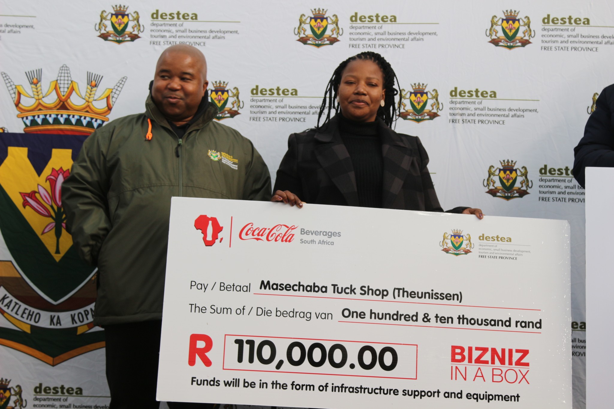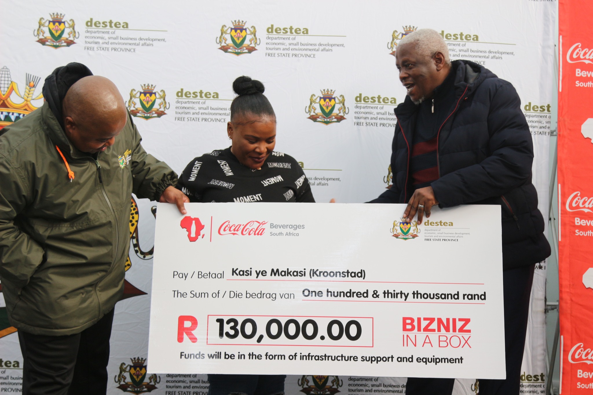 A BizNiz preceded the engagement with the community of Botshabelo in a Box programme in partnership with Coca-Cola at the Botshabelo Digital Hub, wherein Premier Dukwana handed over cheques ranging from fifty thousand rands to two hundred thousand rands and business equipment worth over two million rands to youth-owned SMMES.