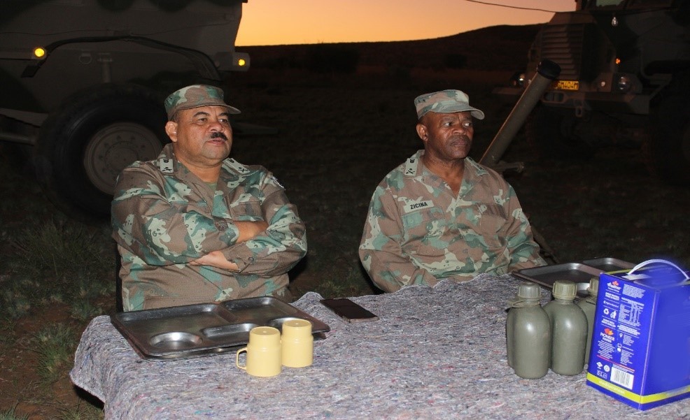 At Motorised Modern Brigade, the atmosphere was also electrifying, and the Ops Dinner also lived up to its expectations. During his keynote address, the General Officer Commanding the Brigade, Brigadier General L. Zicina, urged the members of his Brigade to remain positive and work together like a well-oiled machine during this Exercise. The event was graced by the presence of the Division Chief of Staff, Brigadier General J.K. Thys.