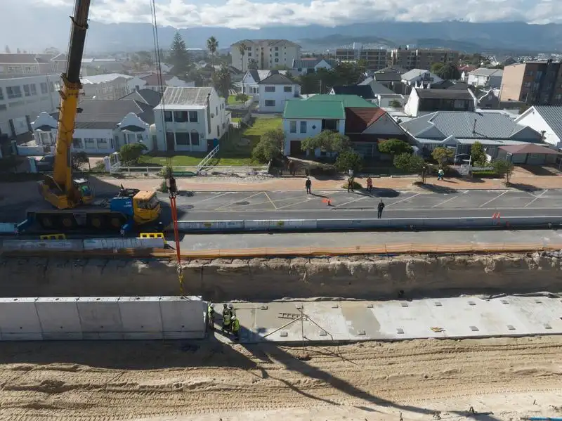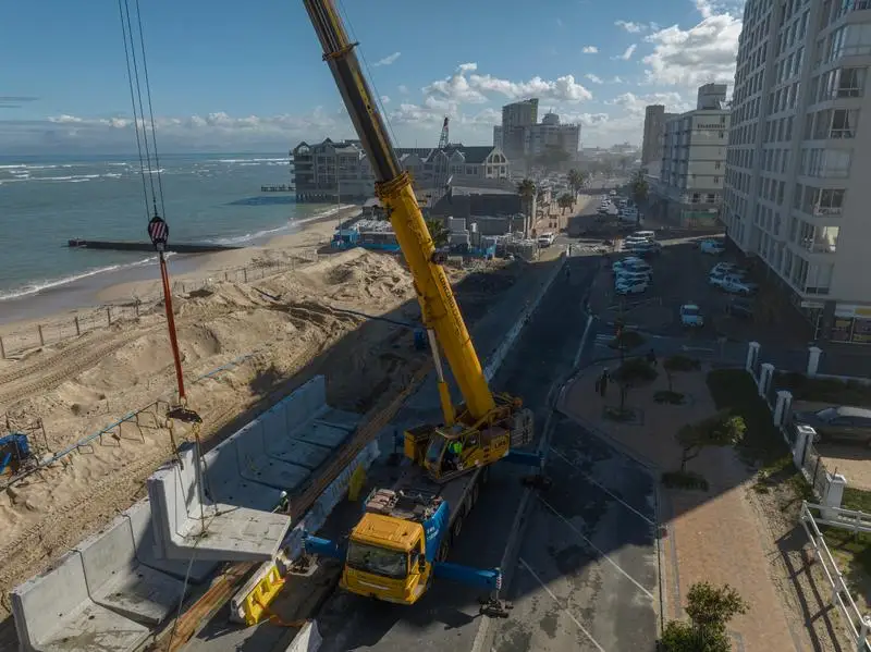 Cape Town: Strand Seawall upgrades made excellent progress. The City of Cape Town announced the progress of the Strand seawall upgrade project which went well under way. The project is mainly focused on bulk excavations, casting foundations, and the placing of large pre-cast concrete wall units.