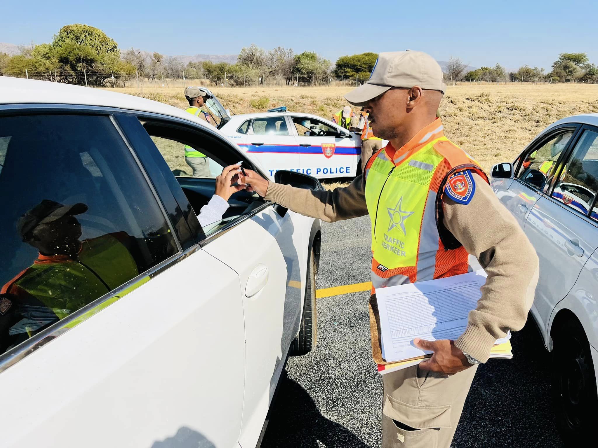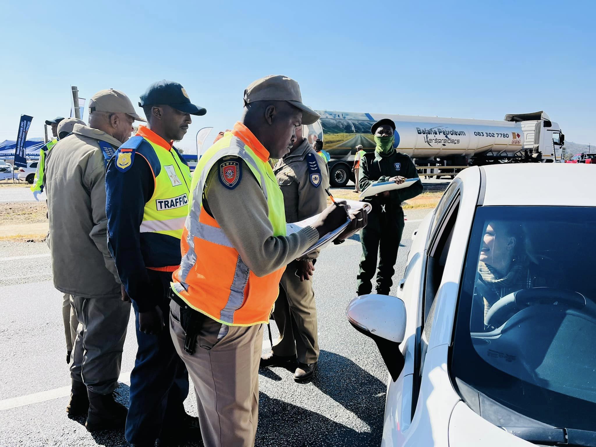 Law enforcement officials took to the N4 road after the opening parade to conduct a stop and check all vehicles coming and going to North West and Gauteng to ensure compliance of drivers, passengers and roadworthy of these vehicles.